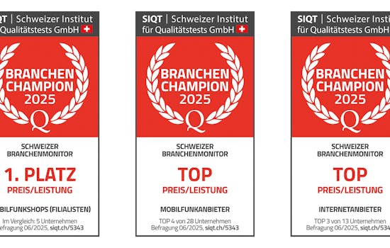 yallo wurde beim Schweizer Branchenmonitor 2025 des Schweizer Instituts für Qualitätstests (SIQT) gleich dreifach für ein sehr gutes Preis-Leistungs-Verhältnis ausgezeichnet: