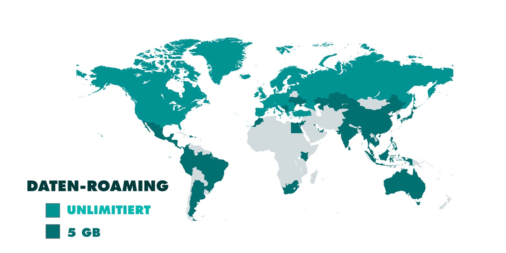 +5 GB Roaming-Daten in 49 Ländern – ohne Aufpreis.