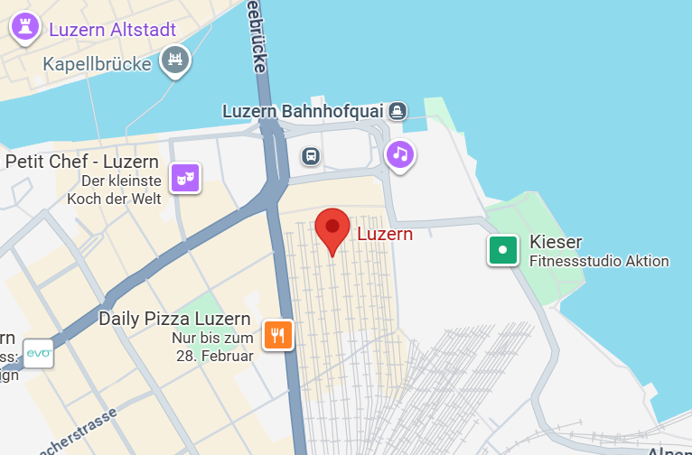 ÖffnungszeitenMontag - Freitag: 09:00 - 21:00Samstag: 09:00 - 20:00Sonntag: 10:00 - 20:00AdresseRailcityZentralstrasse 16003 Luzern Google Maps