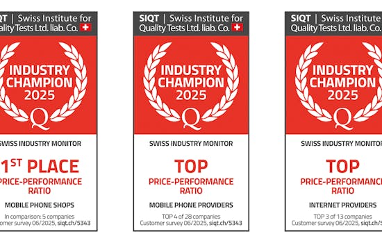 yallo won three awards for its excellent cost/benefit ratio in the 2025 Swiss Industry Monitor from the Swiss Institute for Quality Testing (SIQT):