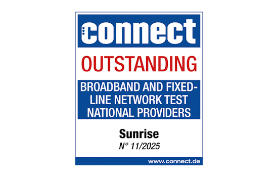 In the latest connect broadband test 2025, Sunrise once again achieved the, rarely awarded, highest rating of ‘outstanding’, for the fourth consecutive time! This result confirms our strong position and reflects a clear improvement over the previous year.