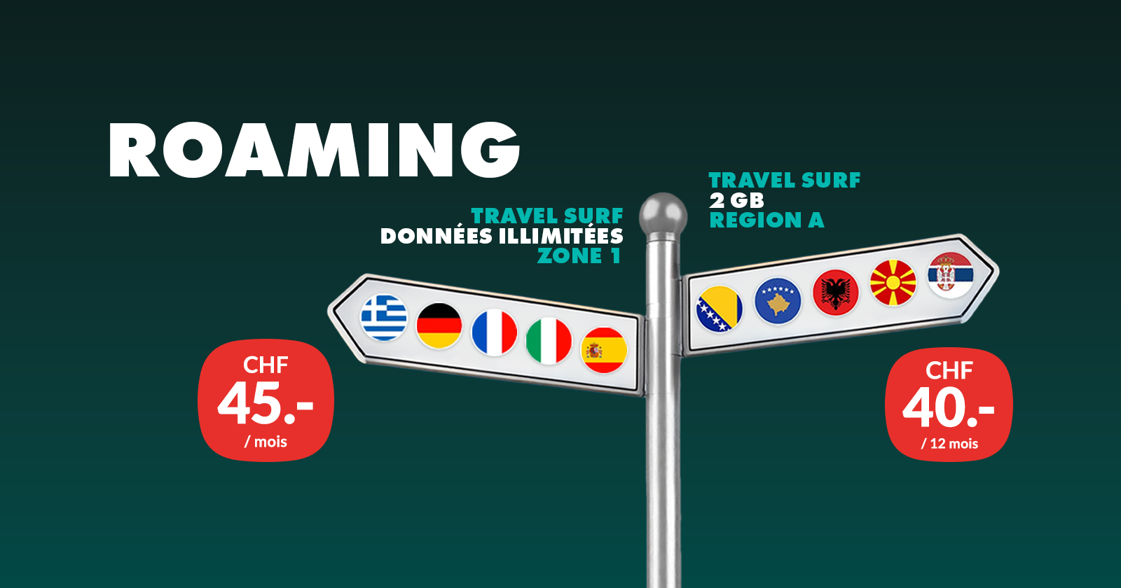 Aperçu des tarifs | Suisse | Roaming | Vérifie ton tarif: Sélection de pays ci-dessous Suisse |