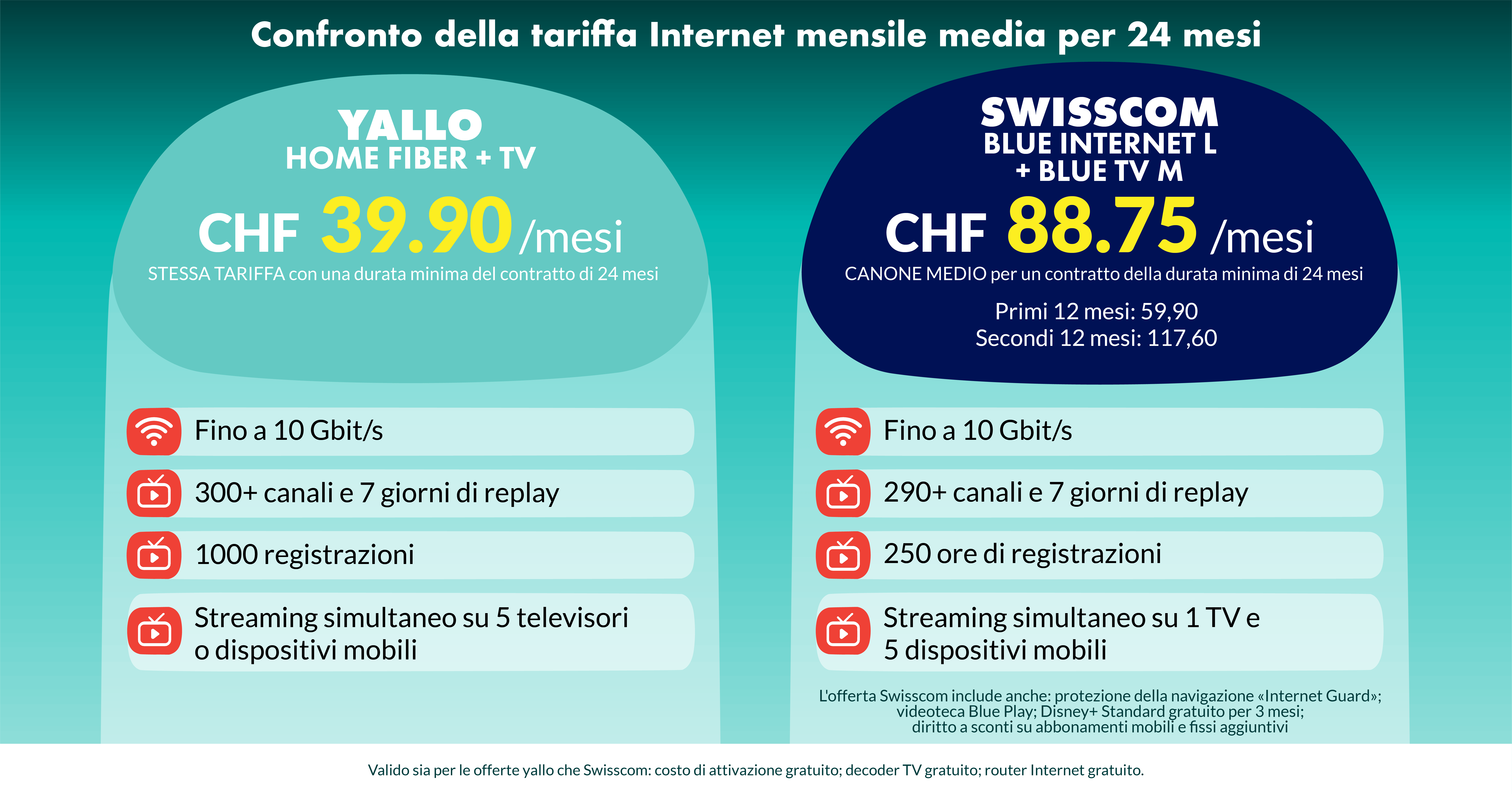 Guarda più di 280 canali + utilizza 7 giorni di replay su yallo TV